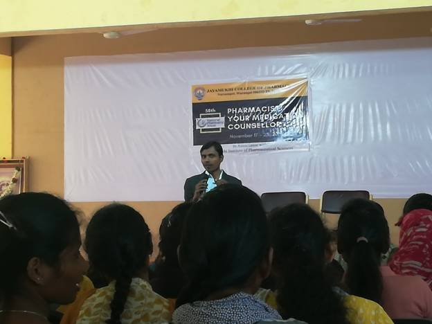 Due to inappropriate and misuse of medicines causing health hazards, this requires a clinical attention of physicians and clinical pharmacists. Poly-pharmacy and incorrect use of drugs are commonly encountered by the patients’ world over. In order to raise awareness among public about implementation of rational use of drugs, this year ‘World Pharmacist Day’ celebrated with full fanfare at Jayamukhi College of Pharmacy. While addressing Principal Dr. S. Vasudeva Murthy given a call for appropriate implementation of rational use of medicines. In his communication reiterated to the students to take up pharmacovigilance program and prescription audit. A ralley was organized in Narsampet town to create awareness among public.